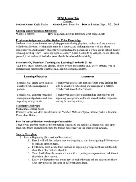 Read lesson plan on patterns for kindergarten mobipocket Gutenberg
